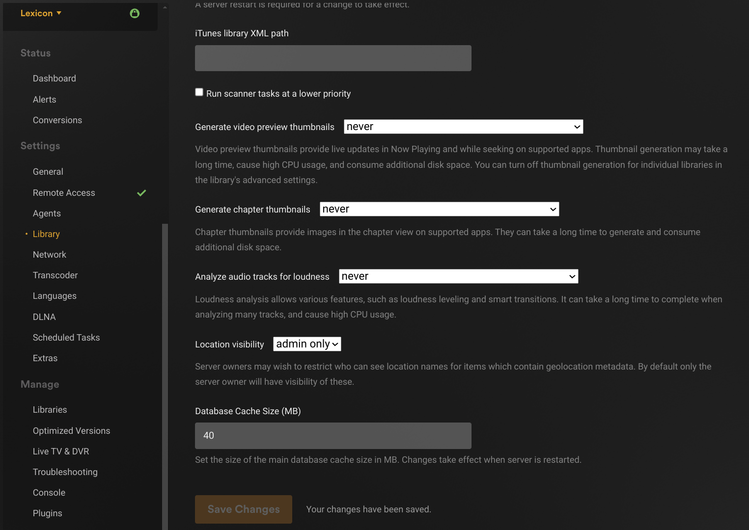 This step may require connecting directly to the web interface from the local network: 192.168.0.128:32400/web