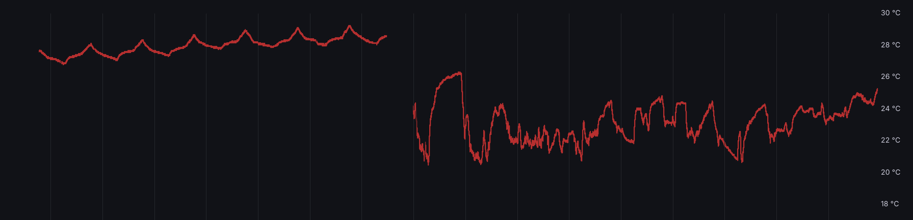 The restricted airflow had also compounded with abnormaly high room temperature. This was promptly addressed and the air around the router and lexicon went down several (Celcius) degrees, but still room temperature retains a tendency to slowly climp up: