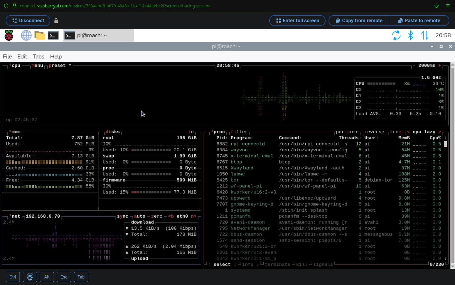 pi@roach:~ $ rpi-connect on