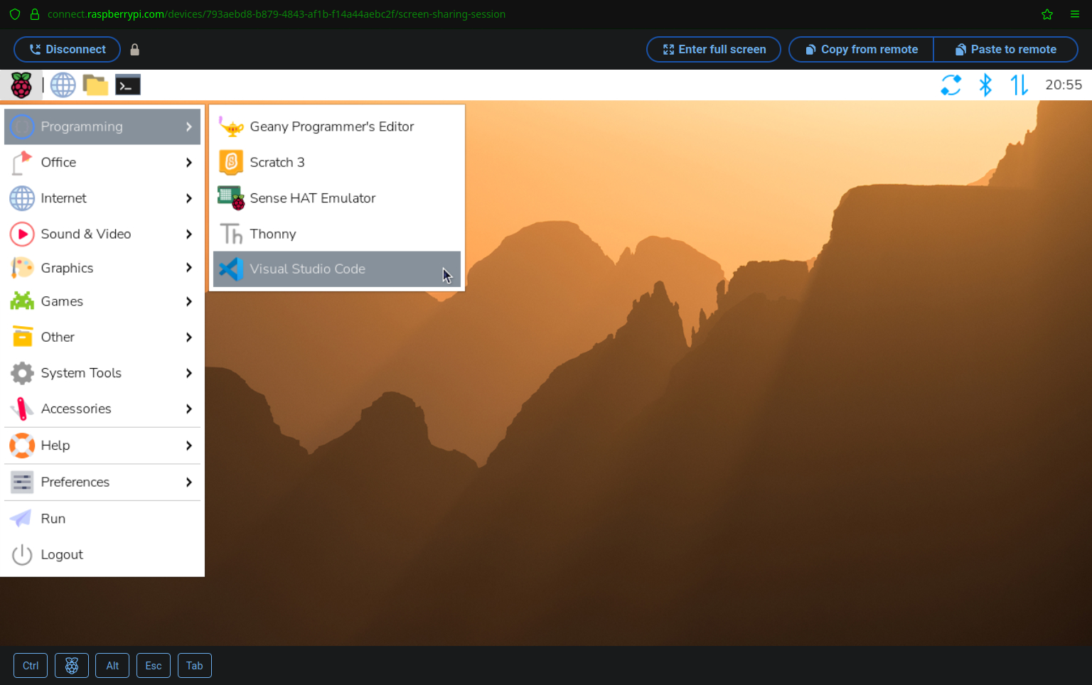 VS Code on Raspberry Pi.